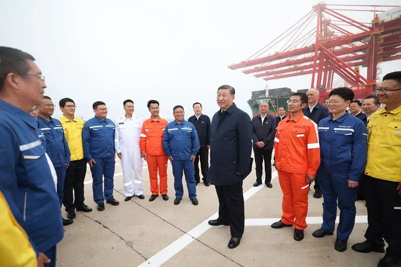 22日下午,習(xí)近平首先來到日照港考察。日照港是重要的能源和大宗原材料中轉(zhuǎn)基地,近年來推進(jìn)智慧化、綠色化建設(shè),建成順岸開放式全自動(dòng)化集裝箱碼頭。習(xí)近平聽取山東省港口發(fā)展建設(shè)和日照港規(guī)劃布局等情況介紹,并察看全自動(dòng)化集裝箱碼頭作業(yè)場景。他說,日照港是改革開放后新建的港口,近年來推進(jìn)科技創(chuàng)新,將傳統(tǒng)港口改造升級(jí)為現(xiàn)代化港口,不僅貨物吞吐量躋身全國前列,還積累了通過傳統(tǒng)產(chǎn)業(yè)改造升級(jí)發(fā)展新質(zhì)生產(chǎn)力的經(jīng)驗(yàn),值得肯定。習(xí)近平親切慰問港口科技工作者、運(yùn)營人員、航運(yùn)人員,希望大家再接再厲、繼續(xù)奮斗,推動(dòng)日照港管理運(yùn)營更上一層樓。