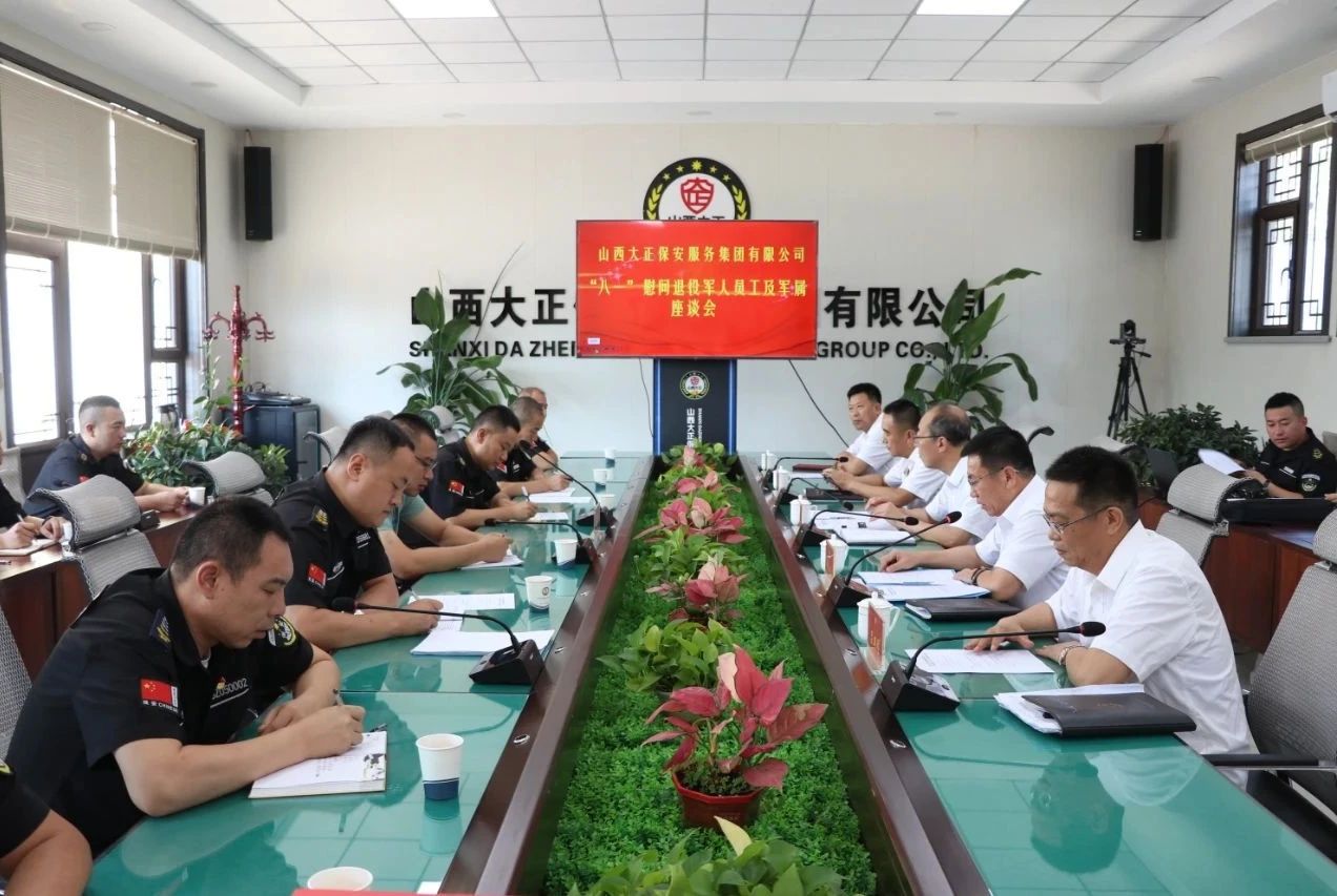 2024年8月1日,在第97個(gè)“八一”建軍節(jié),為深入貫徹落實(shí)習(xí)近平總書記對(duì)退役軍人工作作出的重要指示精神,增強(qiáng)退役軍人榮譽(yù)感,牢記報(bào)國(guó)初心,永葆軍人本色。山西大正保安服務(wù)集團(tuán)有限公司在公司中會(huì)議室隆重舉行了“八一”慰問退役軍人員工及軍屬座談會(huì)。集團(tuán)公司領(lǐng)導(dǎo)及機(jī)關(guān)退役軍人員工、各子(分)公司、城區(qū)中隊(duì)退役軍人員工代表、軍屬代表30余人參會(huì)。此次活動(dòng)旨在向?yàn)楣景l(fā)展做出重要貢獻(xiàn)的退役軍人員工及默默支持他們的軍屬表達(dá)崇高敬意和深切關(guān)懷,進(jìn)一步弘揚(yáng)擁軍優(yōu)屬、擁政愛民的優(yōu)良傳統(tǒng)。