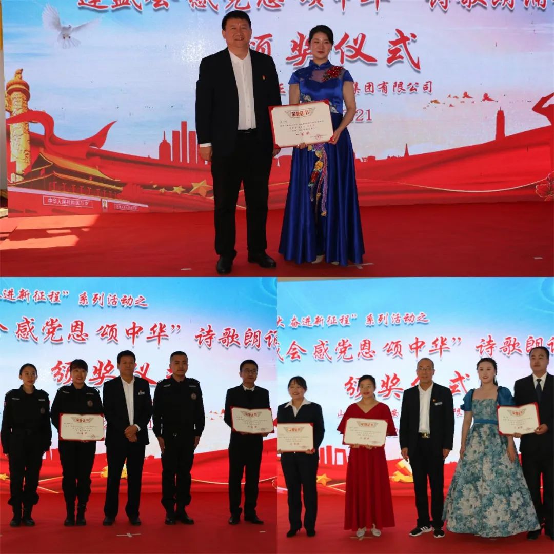 整個(gè)比賽過程高潮迭起,氣氛熱烈,掌聲不斷,讓人心潮澎湃。經(jīng)過激烈角逐,朗誦比賽共評(píng)選出一等獎(jiǎng)1名,二等獎(jiǎng)2名,三等獎(jiǎng)3名,優(yōu)勝獎(jiǎng)5名。與會(huì)領(lǐng)導(dǎo)為獲獎(jiǎng)選手頒發(fā)了獲獎(jiǎng)證書。“喜迎二十大 奮進(jìn)新征程”系列活動(dòng)提高了干部員工隊(duì)伍的凝聚力和戰(zhàn)斗力,增強(qiáng)了廣大員工愛黨、愛國的熱情。今后,公司全體職工將以更加飽滿的精神狀態(tài)和熱情投入到工作中,為公司高質(zhì)量發(fā)展貢獻(xiàn)力量,以實(shí)際行動(dòng)向黨的二十大獻(xiàn)禮。