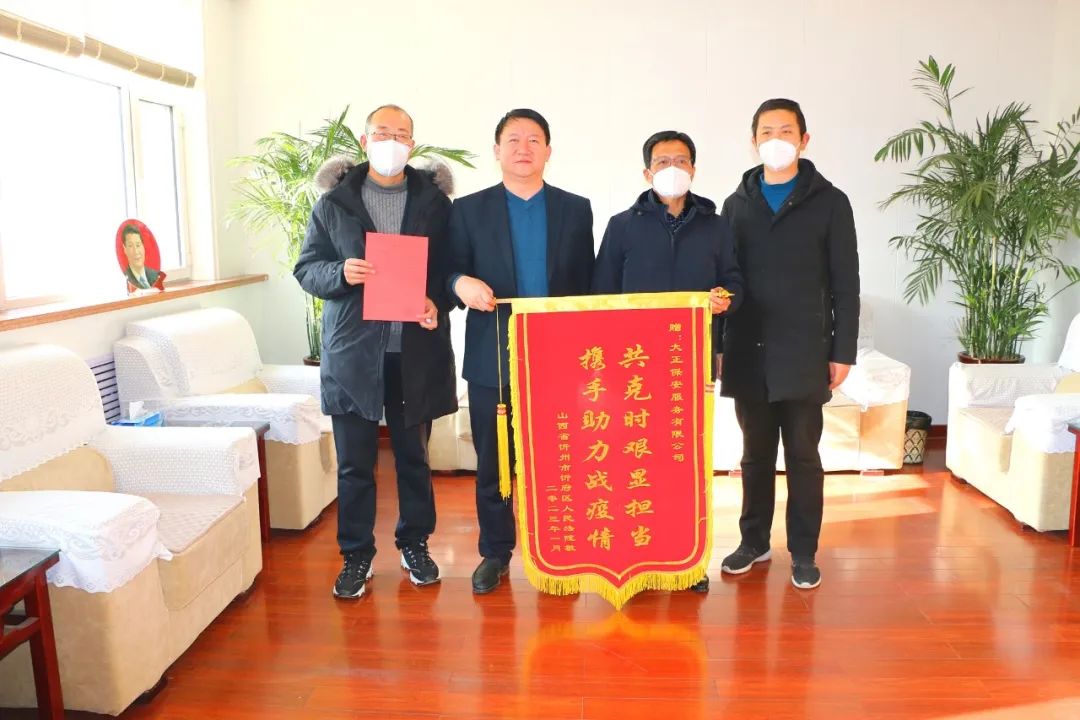 1月9日上午,忻府區(qū)法院黨組成員、副院長黃偉,黨組成員、政治部主任焦旭林帶著寫有“共克時(shí)艱顯擔(dān)當(dāng) 攜手助力戰(zhàn)疫情”的錦旗和一封感謝信來到了山西大正保安服務(wù)集團(tuán)有限公司,表達(dá)對保安公司在疫情防控中無私無畏、甘愿付出的誠摯謝意。大正保安集團(tuán)公司黨委副書記、總經(jīng)理趙培宏、黨委委員、副總經(jīng)理王明生接洽。自2022年11月6日忻府區(qū)突發(fā)疫情以來,山西大正保安服務(wù)集團(tuán)有限公司駐忻府區(qū)法院勤務(wù)點(diǎn)的隊(duì)員們在陳曉東隊(duì)長的帶領(lǐng)下,積極響應(yīng)疫情防控各項(xiàng)要求,除在保障法院關(guān)鍵時(shí)期平穩(wěn)運(yùn)行外,保安公司職員還能夠挺身而出,積極投身防疫點(diǎn)值守、后勤保障、車輛運(yùn)行、機(jī)關(guān)防疫消殺等方面,以實(shí)際行動(dòng)為忻府區(qū)法院疫情防控及機(jī)關(guān)安保工作做出了突出貢獻(xiàn)。越是緊要關(guān)頭,越能映照初心;越在關(guān)鍵時(shí)刻,越顯擔(dān)當(dāng)使命。面對突如其來的疫情“大考”,大正保安集團(tuán)積極響應(yīng)號(hào)召,主動(dòng)、迅速地配合我院防疫部署,精心服務(wù)群眾、嚴(yán)格執(zhí)行命令、防范意識(shí)到位,助力織密織牢疫情防控網(wǎng),充分展示了大正保安人的職業(yè)素養(yǎng)與責(zé)任擔(dān)當(dāng)。幾年來,山西大正保安服務(wù)集團(tuán)有限公司駐區(qū)法院全體職員,以法院為家,服從工作需要,積極參與各項(xiàng)審判事業(yè),做到聞令而動(dòng),成為不可或缺的中堅(jiān)力量,為法院跨越式發(fā)展提供了巨大支持。