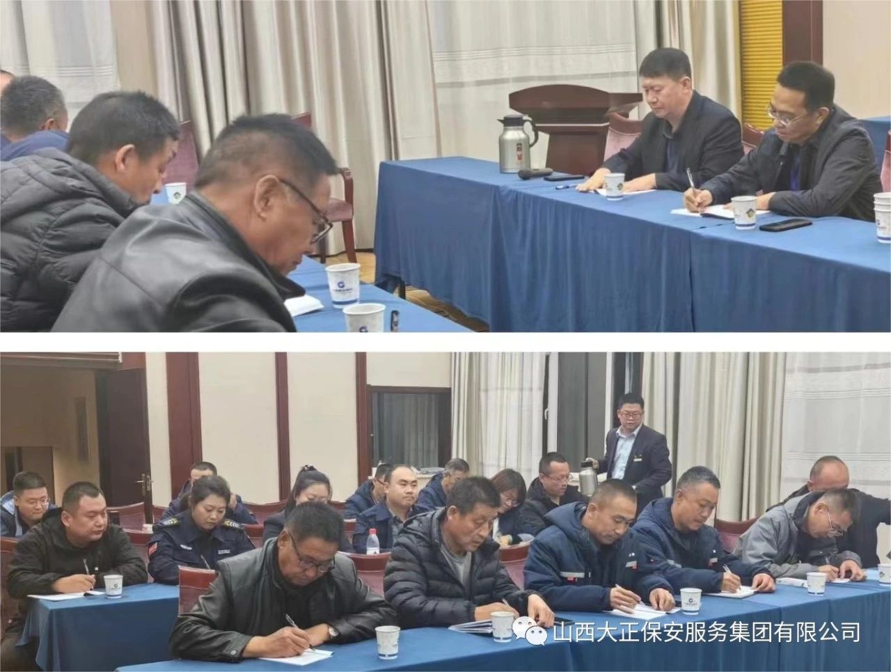 為深入貫徹落實(shí)省、市領(lǐng)導(dǎo)重要指示批示精神,確保公司安全運(yùn)行無事故,山西大正保安服務(wù)集團(tuán)有限公司召開安全生產(chǎn)工作安排部署會(huì)議,進(jìn)一步提升安全防范意識(shí)和管理水平,樹牢安全發(fā)展理念,扎實(shí)推進(jìn)安全風(fēng)險(xiǎn)治理,壓實(shí)安全生產(chǎn)責(zé)任,堅(jiān)決遏制重特大事故,夯實(shí)安全基礎(chǔ)。會(huì)上,集團(tuán)公司黨委委員、分管安全副總經(jīng)理王明生作了具體安排和部署。