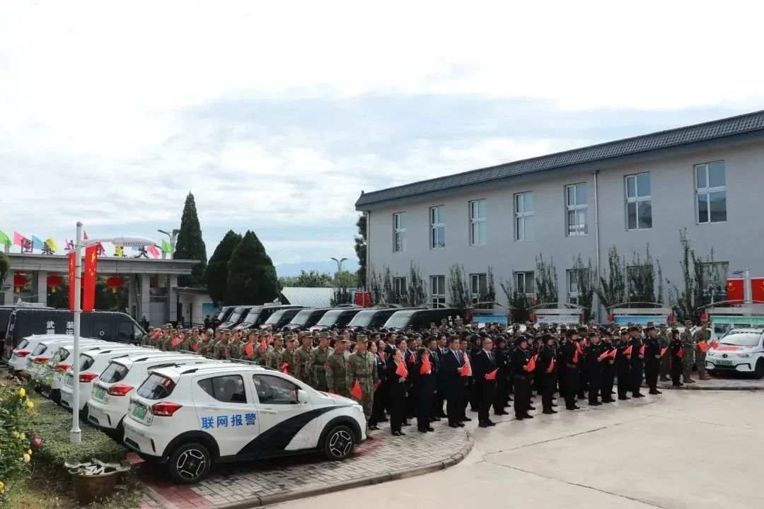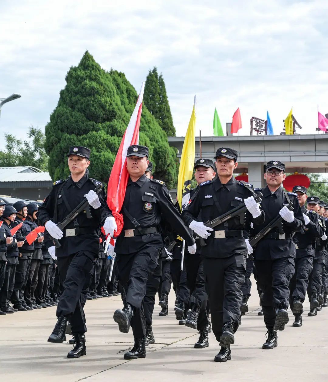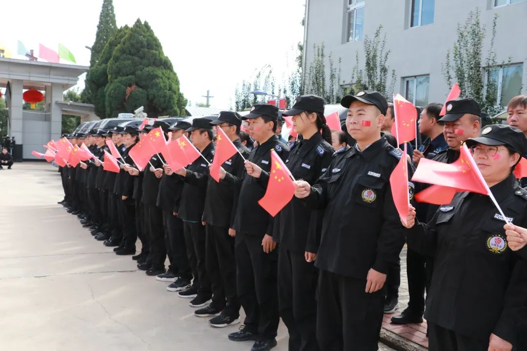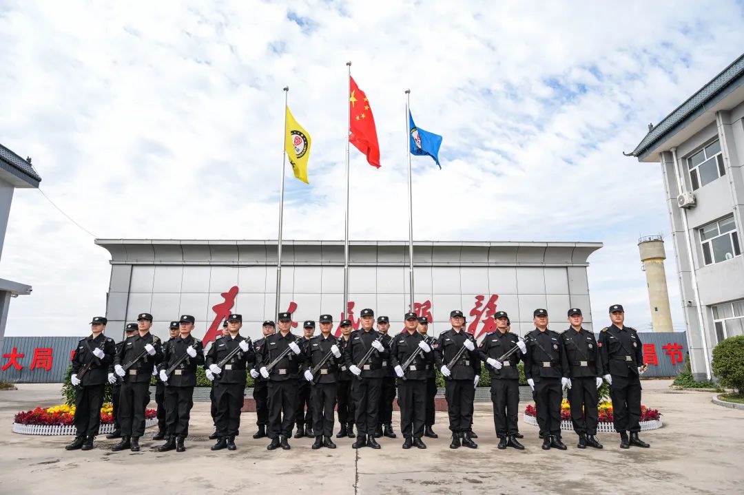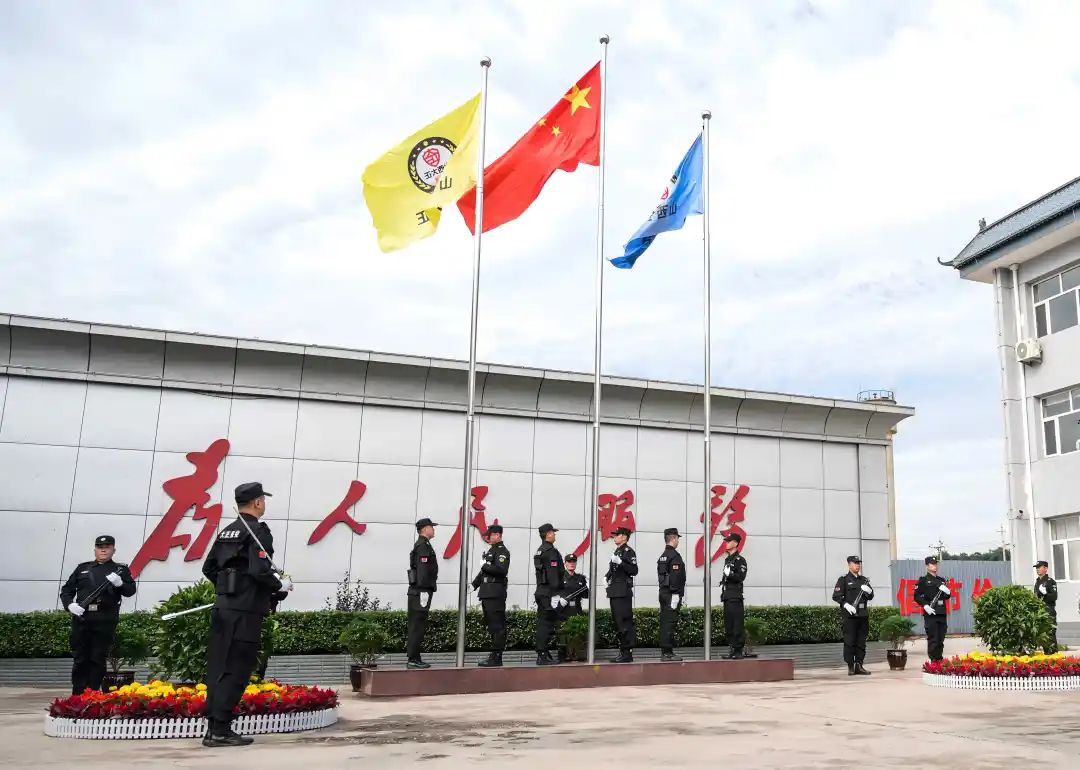 節(jié)日的公司院內(nèi)外,四周花團錦簇,大門口燈籠高掛、彩旗飄揚,為節(jié)日增添了濃厚的喜慶氛圍。公司運鈔車、巡邏車、運兵車干凈整潔,排列在場地兩側(cè),升旗儀式更顯隆重。9時30分,集團公司、各子公司領(lǐng)導和機關(guān)各部門、城區(qū)員工共300多人整齊列隊,懷著激動的心情,手持小國旗,臉上貼著愛國貼紙、洋溢幸福的笑容,眼神中充滿了對祖國的熱愛和對升旗儀式的期待。
