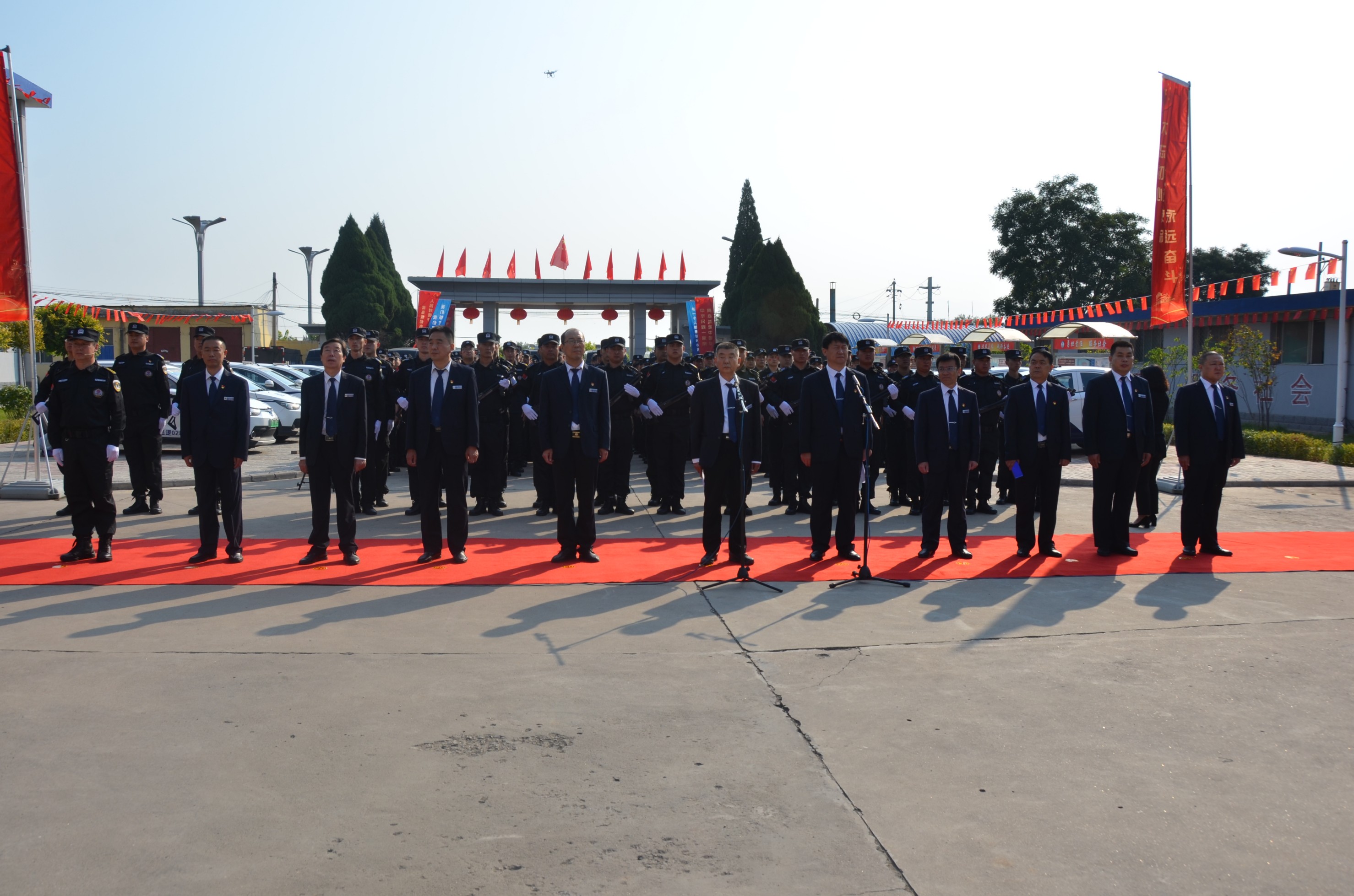 張躍生指出:回顧公司走過的十九年創(chuàng)業(yè)發(fā)展歷程,我們不斷發(fā)展、不斷向前,廣大黨員干部員工始終保持昂揚(yáng)向上的精神狀態(tài),開拓創(chuàng)新、銳意進(jìn)取、團(tuán)結(jié)拼搏、無(wú)私奉獻(xiàn),寫下了不平凡的詩(shī)篇。希望面臨安保行業(yè)的新機(jī)遇和新挑戰(zhàn),廣大黨員干部職工要統(tǒng)一思想、提高認(rèn)識(shí),增強(qiáng)“四個(gè)意識(shí)”、堅(jiān)定“四個(gè)自信”、做到“兩個(gè)維護(hù)”,深入開展“不忘初心、牢記使命”主題教育,同心同德、真抓實(shí)干,全力以赴做好本職工作,以優(yōu)異的成績(jī)獻(xiàn)禮新中國(guó)七十華誕!儀式在現(xiàn)場(chǎng)全體人員齊聲高唱的《歌唱祖國(guó)》歌聲中達(dá)到高潮,大家揮舞著手中的國(guó)旗,紛紛表達(dá)對(duì)祖國(guó)的良好祝愿。