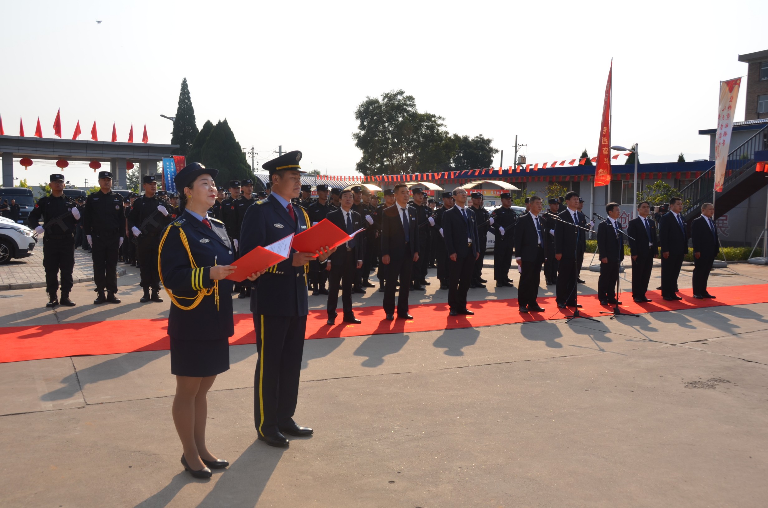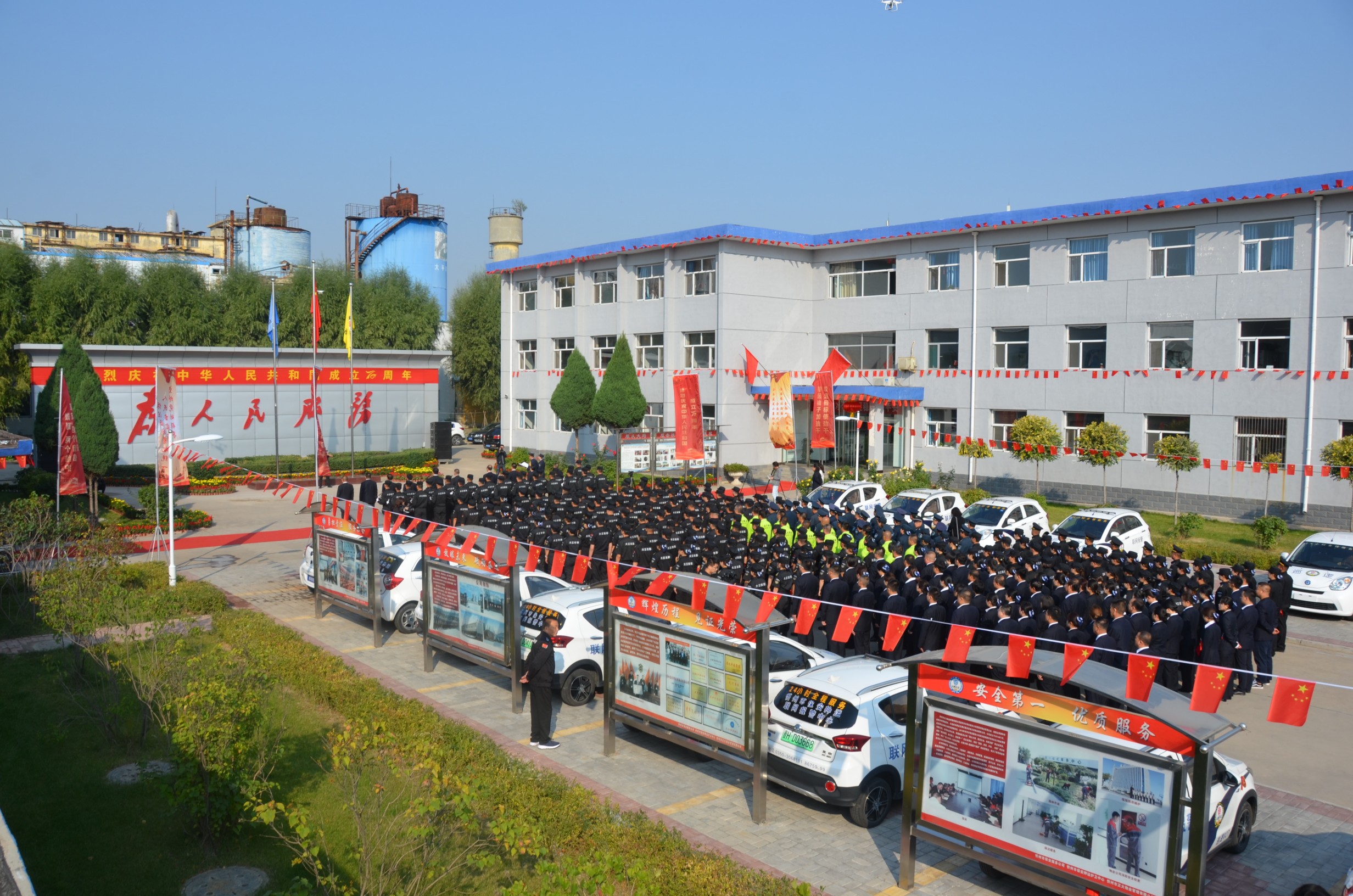 在中華人民共和國(guó)成立70周年即將來臨之際,為進(jìn)一步提高廣大干部職工的愛國(guó)意識(shí),營(yíng)造濃厚的愛國(guó)愛企氛圍,激發(fā)正能量、提升凝聚力。9月27日,山西大正保安服務(wù)有限公司在公司城南駐地隆重舉行莊嚴(yán)的升旗儀式。黨委書記、董事長(zhǎng)張躍生作重要講話,公司黨委委員、副總經(jīng)理趙培宏主持升旗儀式。王明生、邢春生、張瑞東、呂雙明等公司領(lǐng)導(dǎo)、機(jī)關(guān)各單位及基層九個(gè)分公司的400余名干部職工參加儀式。