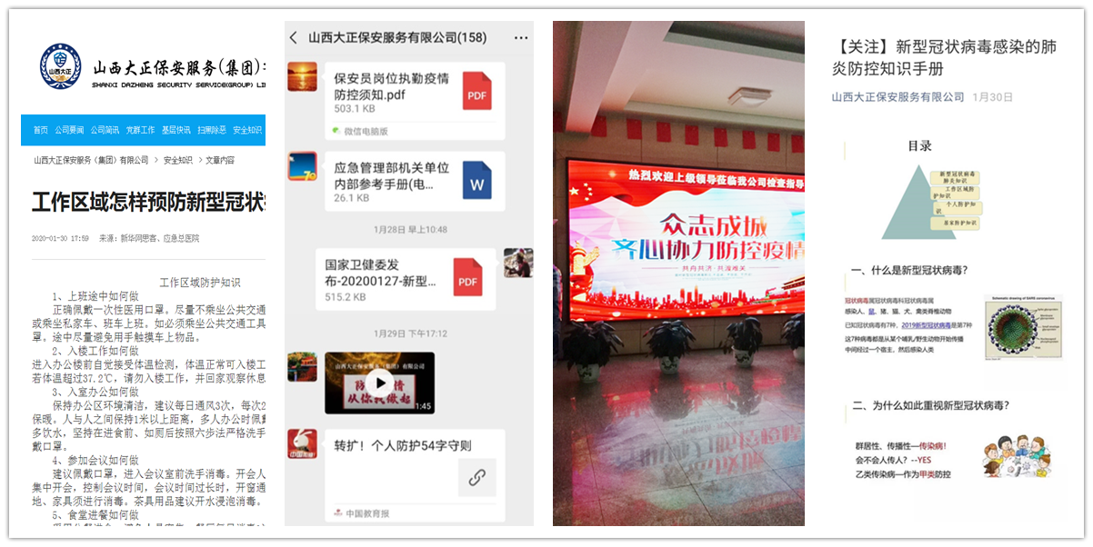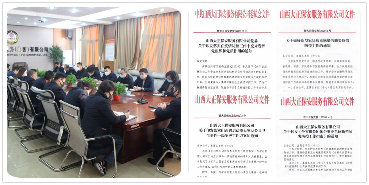 新型冠狀病毒肺炎疫情爆發(fā)以來,山西大正保安服務(wù)有限公司堅決貫徹黨中央、國務(wù)院決策部署,深入貫徹省委、省政府,市委、市政府和市國資委安排部署,認真落實“堅定信心、同舟共濟、科學防治、精準施策”的總要求,根據(jù)企業(yè)實際情況周密安排部署,多措并舉扎實推進企業(yè)疫情防控工作。