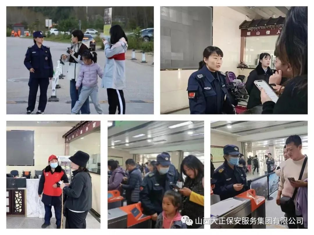 大正保安集團(tuán)公司的女保安隊(duì)員們,正是通過她們不懈的努力和辛勤的付出,讓全國各地的游客度過一個(gè)快樂、祥和的“兩節(jié)”,用她們的勇敢和堅(jiān)韌,應(yīng)對著各種惡劣的氣候和復(fù)雜的勤務(wù),把五臺山景區(qū)變?yōu)橐粋(gè)平安、有序、快樂的旅游勝地。此次勤務(wù)時(shí)間長,壓力大,但她們用微笑服務(wù)保持始終。無論是引導(dǎo)游客,檢查安全設(shè)施,還是處理游客投訴,她們總能以親切和友好的態(tài)度面對每一個(gè)人。她們默默地工作著,時(shí)刻保持專業(yè)素養(yǎng)和良好形象,為游客提供熱情細(xì)致的服務(wù)。