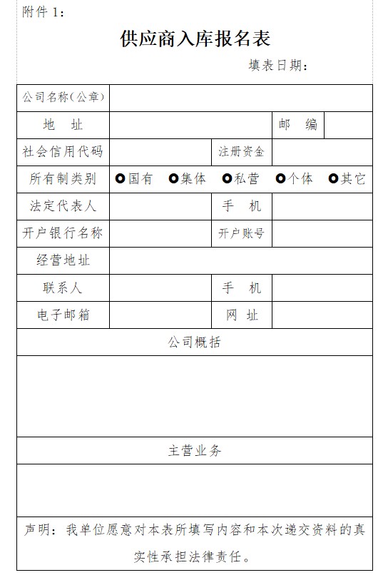 (一)供應(yīng)商入庫報名表(見附件1);
