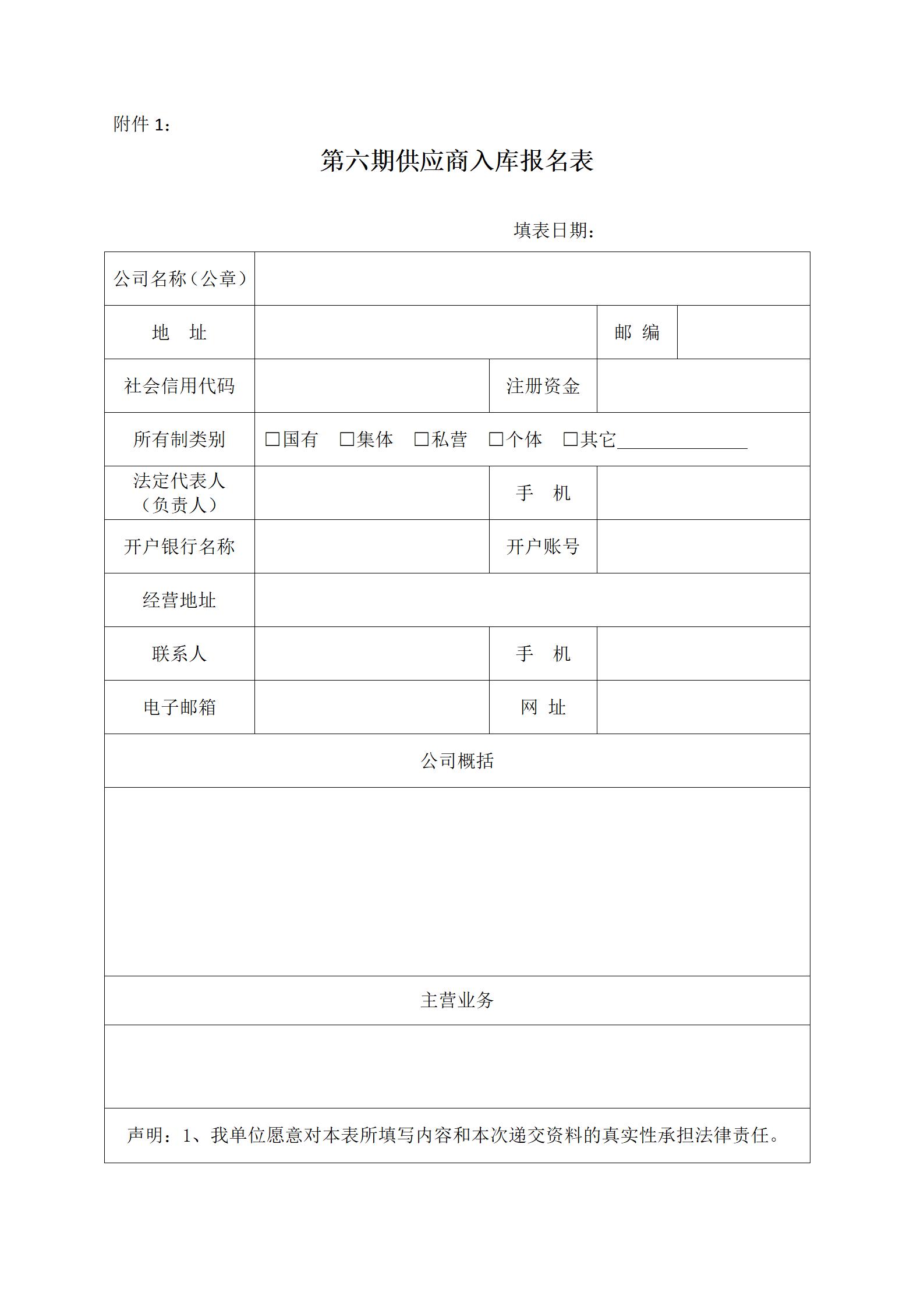 1、供應(yīng)商入庫(kù)報(bào)名表(見附件);