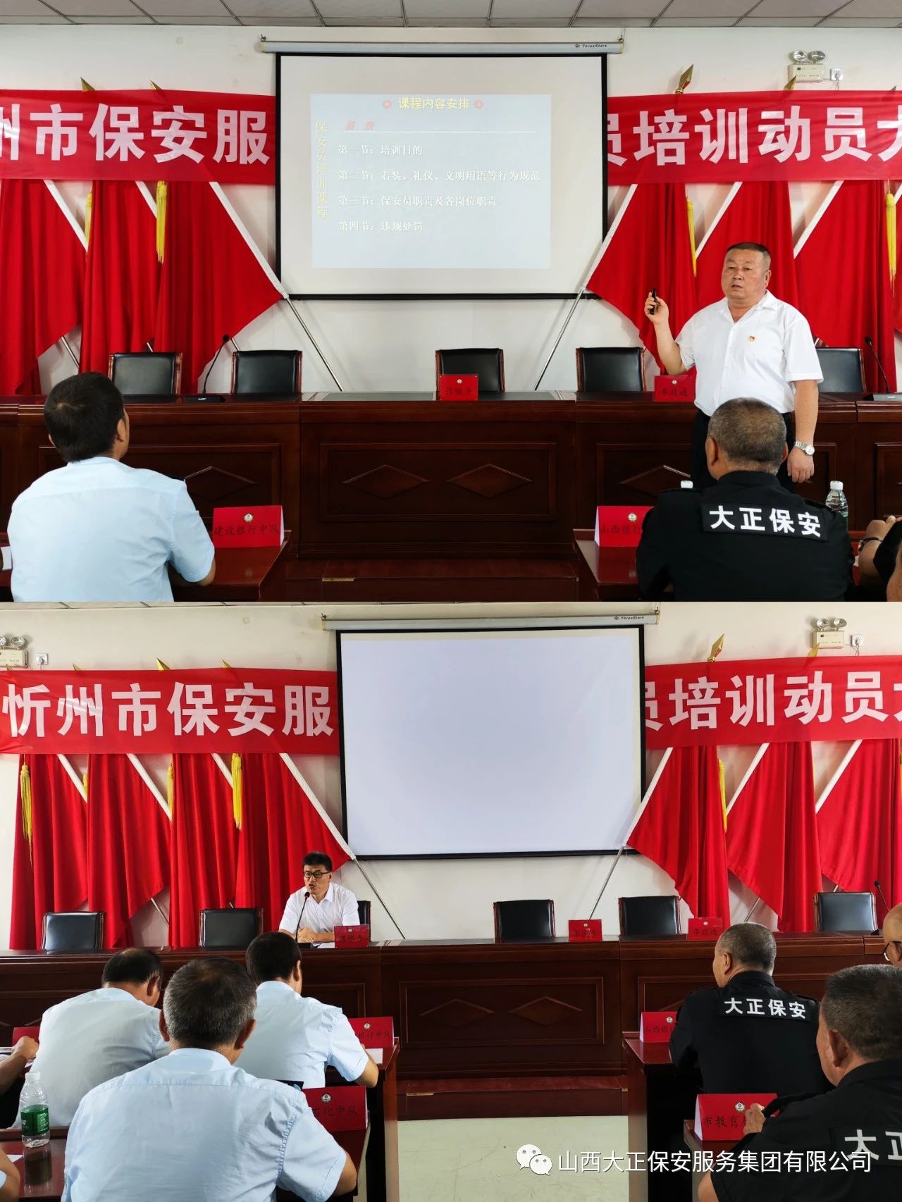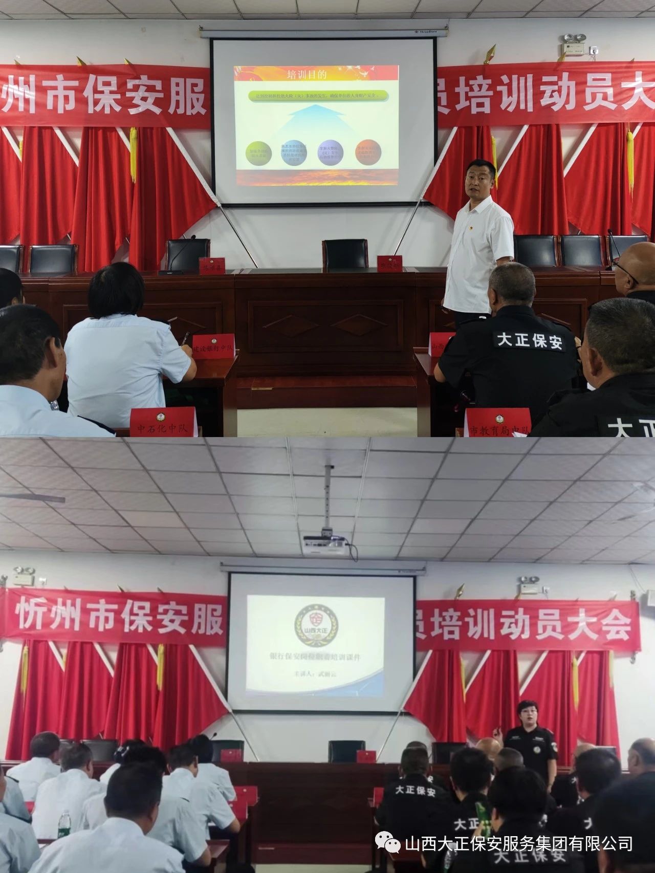 為進一步加強公司保安隊伍正規(guī)化管理,提升保安員的職業(yè)技能和履職能力,切實維護用人單位財產(chǎn)安全和治安秩序。2023年9月2日上午,忻州市保安服務公司于3樓會議室召開保安員培訓動員大會。集團公司黨委書記、董事長、總經(jīng)理趙培宏作了開訓講話,公司董事、財務總監(jiān)呂雙明作了動員講話,總經(jīng)理助理、保安服務公司經(jīng)理蔡車峰作了培訓要求與部署。