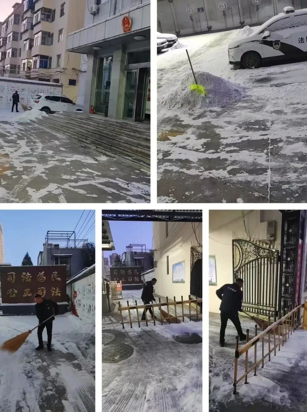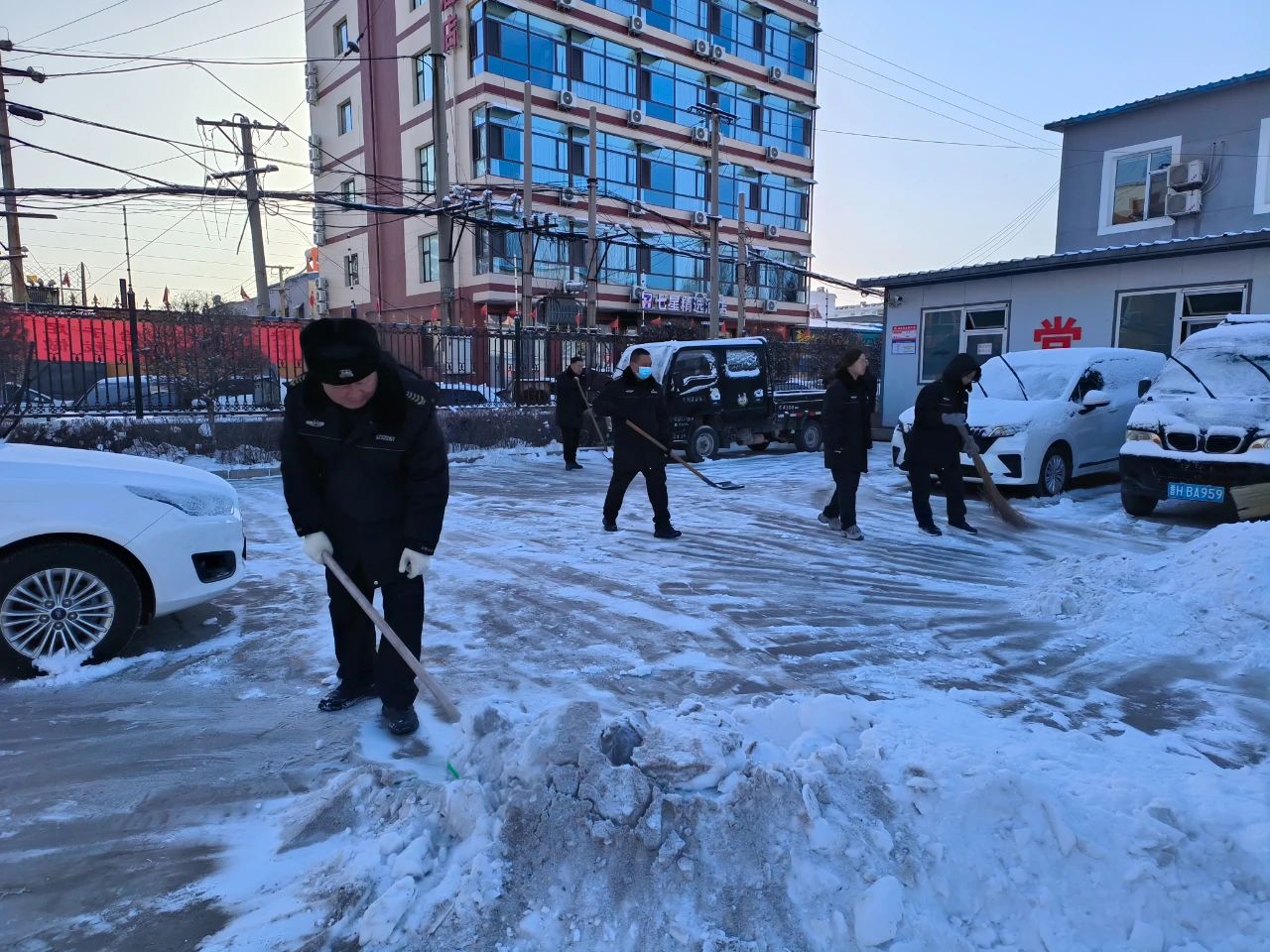 清掃積雪的工作看似簡(jiǎn)單,卻充滿了挑戰(zhàn)。積雪已經(jīng)結(jié)成厚厚的冰層,路面濕滑,每一步都需要小心翼翼。盡管如此,保安隊(duì)伍從不畏懼嚴(yán)寒和困難,始終保持著高度的責(zé)任感,認(rèn)真負(fù)責(zé)地完成任務(wù)。無論是周邊的道路,還是進(jìn)出頻繁的停車場(chǎng),哪里有積雪,哪里就有我們忙碌的身影。在大家的努力下積雪很快被清理干凈,確保了每條道路暢通無阻,為客戶單位提供了一個(gè)安全、便捷的環(huán)境,為市民的安全出行保駕護(hù)航。