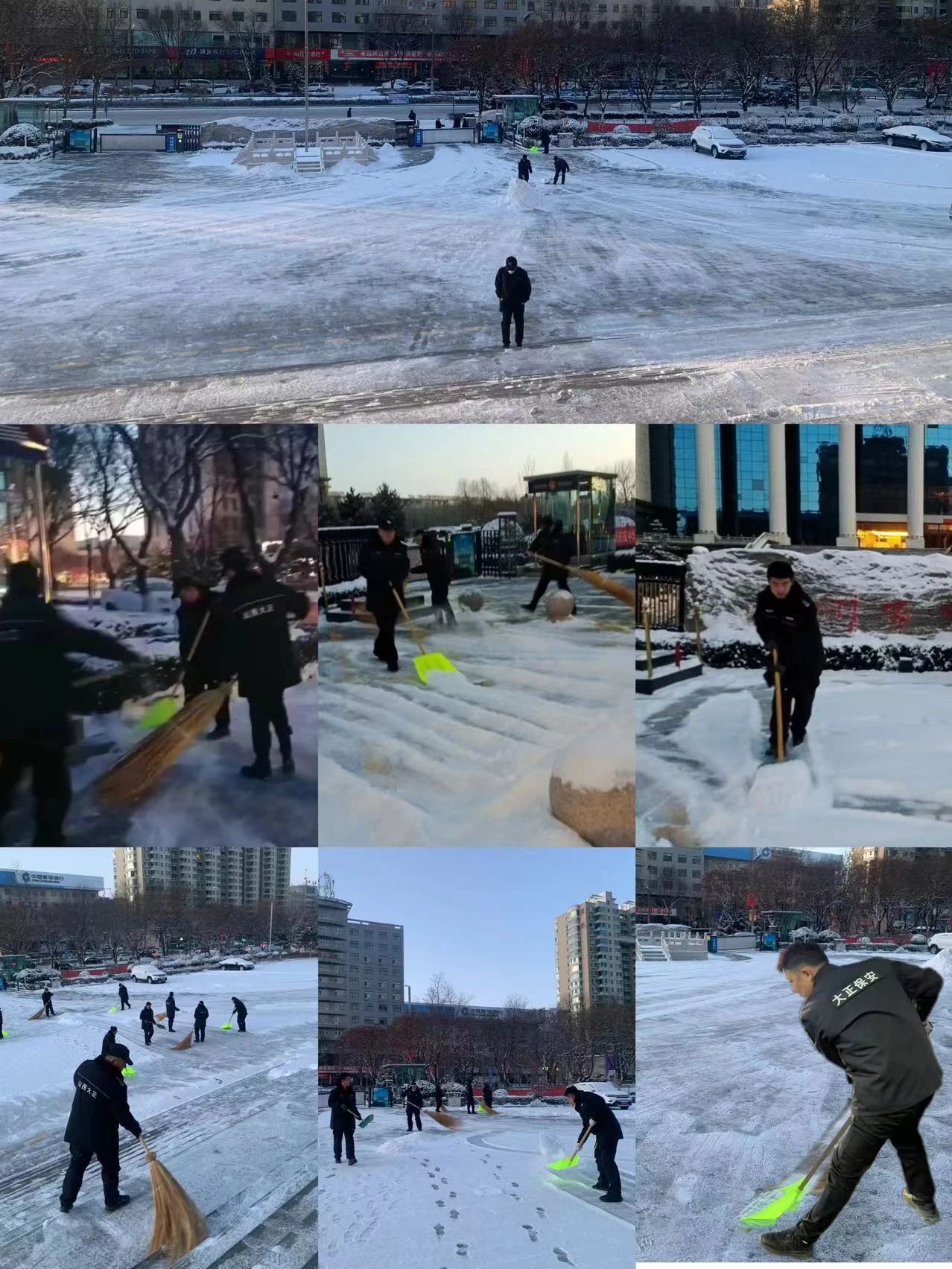 1月25日,忻州市迎來了新年的第一場(chǎng)大雪,整個(gè)城市銀裝素裹,美不勝收。然而,積雪覆蓋了道路與工作場(chǎng)所,給出行和工作帶來了不小的困擾。山西大正保安服務(wù)集團(tuán)有限公司各駐勤點(diǎn)的保安隊(duì)伍積極行動(dòng),迅速清掃積雪,全力保障客戶單位和市民的出行安全。我們的職責(zé)不僅是保障客戶單位的安全,還要為市民創(chuàng)造整潔、安全的環(huán)境。