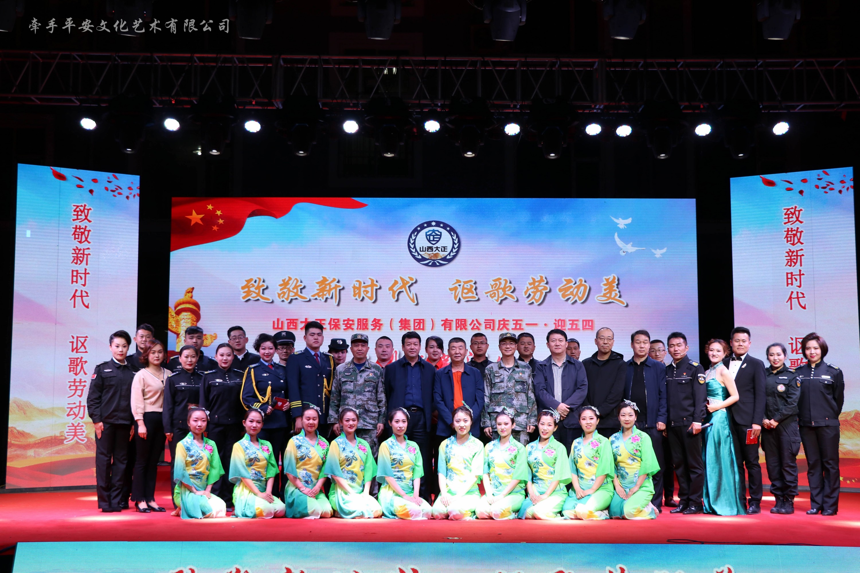 整場晚會精彩紛呈,內(nèi)容豐富,熱情謳歌了廣大勞動者用勞動唱響了新時代的奮斗之歌。公司的蛻變離不開公司領導和員工的艱辛付出,音舞說唱《致敬,大正保安》、戲歌《千秋梨園情》則道出了,同呼吸、共命運,企業(yè)領導和員工盡心盡職,勞動奉獻的企業(yè)精神。演出最后在文化藝術公司全體員工的大合唱《咱們工人有力量》中落下帷幕。