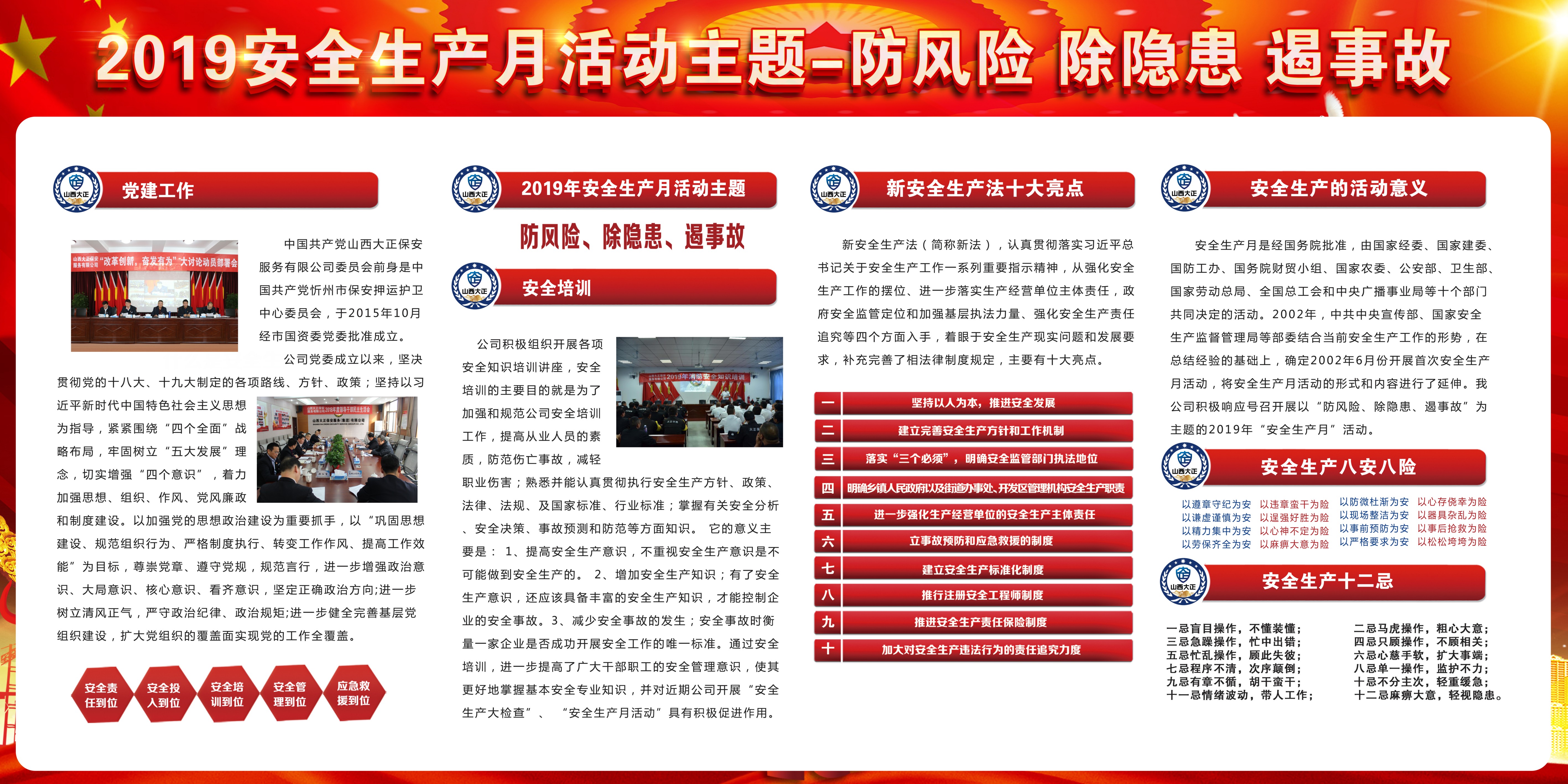 根據(jù)省政府安委辦、市政府安委辦要求,公司專門制定實施方案,周密組織開展以“防風險、除隱患、遏事故”為主題的2019年我公司第18個“安全生產(chǎn)月”活動。