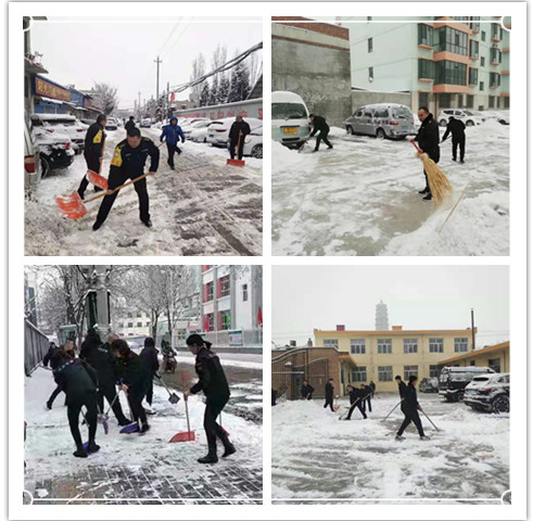 本次活動,利用1月6日—7日兩天時間,我公司組織全體員工清掃了位于開發(fā)區(qū)、七一南路、逯家莊、氣象北巷、通崗路等處城區(qū)駐地以及分布各縣的基層駐地的院內(nèi)積雪。我公司派駐各單位的保安、物業(yè)基層單位也積極行動,與服務(wù)單位的同志們一起清掃積雪,有力的保障了服務(wù)單位業(yè)務(wù)正常運行。同時,進一步延伸清掃范圍,將九原東街北同蒲鐵路線附近,利民西街北九巷附近,七一路小學(xué)及十一中兩所學(xué)校附近等處路面的積雪進行徹底清掃,為附近群眾出行提供了便利。