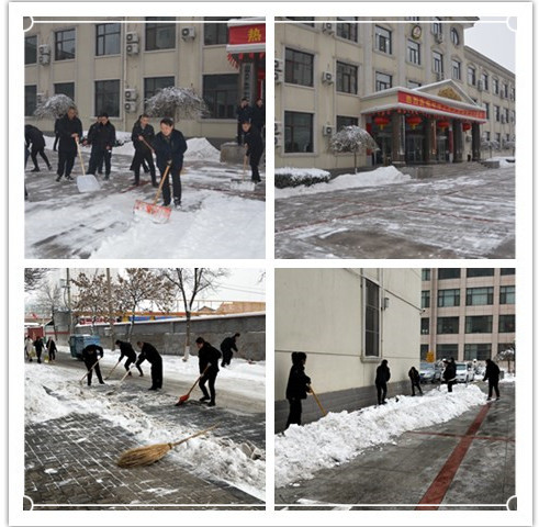 組織機關(guān)干部職工清掃辦公區(qū)域和周邊道路積雪,活動中,凜冽的寒風(fēng)阻擋不住大家高漲的熱情,齊心協(xié)力,配合默契將積雪清理干凈,使院內(nèi)及周邊道路恢復(fù)了暢通。