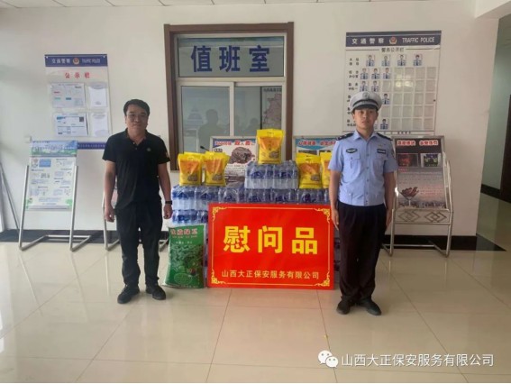 6月3日,山西大正保安服務(wù)(集團(tuán))有限公司河曲中隊(duì)代理中隊(duì)長霍健,帶領(lǐng)中隊(duì)隊(duì)員代表公司慰問了河曲縣公安局交通警察大隊(duì),為奮斗在交通指揮一線的縣交警大隊(duì)民警送去防暑降溫慰問品。將關(guān)愛送到一線,把清涼送到一線,確保一線交通干警同志們度過一個(gè)安全、衛(wèi)生、清涼的夏季。感謝一線交警不畏烈日、日夜堅(jiān)守崗位,確保了城區(qū)干道交通暢通、人民出行安全,營造了良好的道路交通環(huán)境。交警大隊(duì)副隊(duì)長李強(qiáng)接受了慰問,并表示:“有了企業(yè)的關(guān)愛及社會各界的理解和支持,讓交警感受到了無盡的清涼。全體民輔警將繼續(xù)發(fā)揚(yáng)‘能吃苦、能戰(zhàn)斗、能奉獻(xiàn)’的優(yōu)良作風(fēng),以更加飽滿的工作熱情投入工作中,以實(shí)際行動(dòng)回報(bào)社會各界的關(guān)愛。”