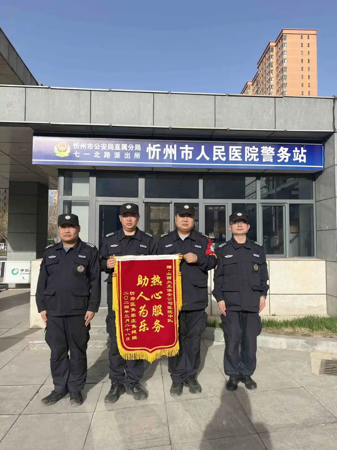 市人民醫(yī)院駐勤點(diǎn)中隊(duì)長期以來守職盡責(zé)、細(xì)查安全隱患,在面對(duì)不法分子毫不退怯,全力保護(hù)醫(yī)護(hù)人員不受傷害。對(duì)廣大患者的困難,主動(dòng)伸手、幫助他人。市醫(yī)院駐勤中隊(duì)的行為,為山西大正樹立起敬業(yè)、友善的良好風(fēng)尚。他們堅(jiān)守在醫(yī)院安保一線,更是在后方,成為醫(yī)護(hù)人員和患者最堅(jiān)實(shí)的壁壘。他們是一支堅(jiān)定而又溫暖有力量的隊(duì)伍,24小時(shí)的堅(jiān)守,成為了醫(yī)院最堅(jiān)定的守護(hù)者。