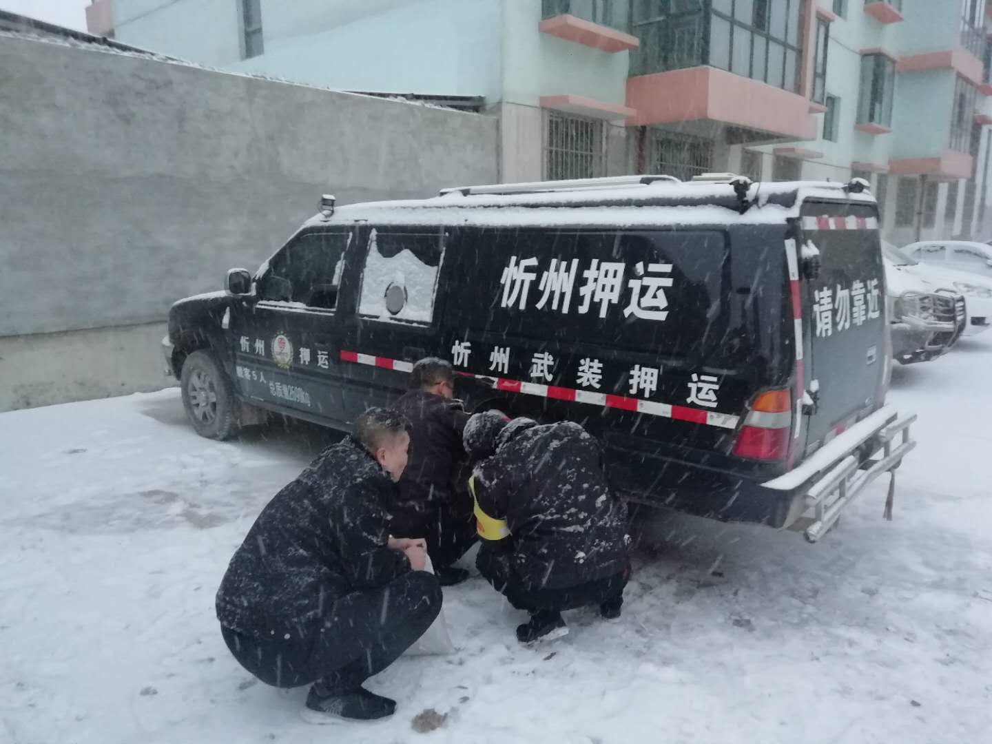 為預(yù)防押運(yùn)車輛發(fā)生交通安全事故,切實(shí)加強(qiáng)降雪天氣條件下行車安全管理工作,確保金融守護(hù)押運(yùn)工作穩(wěn)定,把公司安全工作落到實(shí)處,在開(kāi)展押運(yùn)工作中,守押基層中隊(duì)根據(jù)總公司處理雨雪天惡劣天氣預(yù)案,做了全面的安全部署,合理安排車輛行車安全,注意檢查車輛安全性能、行車車載設(shè)備及安全帶、防彈頭盔、防彈衣,技術(shù)員隨時(shí)觀察并記錄每輛車的運(yùn)行路線以及周邊情況。車輛出發(fā)前,各車組采取添加防滑鏈,降低行駛速度等安全措施,把好安全關(guān)。中隊(duì)負(fù)責(zé)人和安全員分別跟車,在偏遠(yuǎn)山路地區(qū)與車組共同接受這場(chǎng)風(fēng)雪的考驗(yàn),給隊(duì)員們不怕遇到雨雪困難,有效的克服各種困難增加了堅(jiān)定的信念,安全順利的完成運(yùn)營(yíng)網(wǎng)點(diǎn)勤務(wù)任務(wù)。