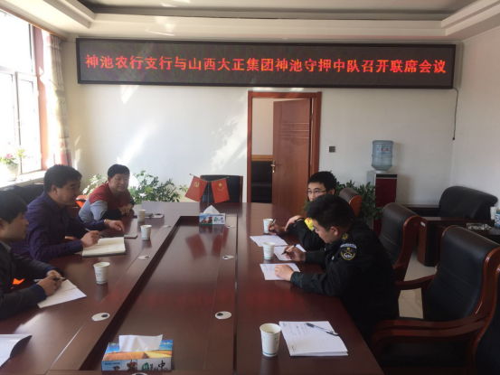 4月2日,守押神池中隊(duì)受邀與農(nóng)行神池支行召開(kāi)聯(lián)席會(huì)議。該行主管安全保衛(wèi)工作的鄧步云書(shū)記主持會(huì)議,守押神池中隊(duì)中隊(duì)長(zhǎng)、副中隊(duì)長(zhǎng)、安全員和該行辦公室、營(yíng)業(yè)部、ATM加清鈔等部門(mén)負(fù)責(zé)人參加會(huì)議。