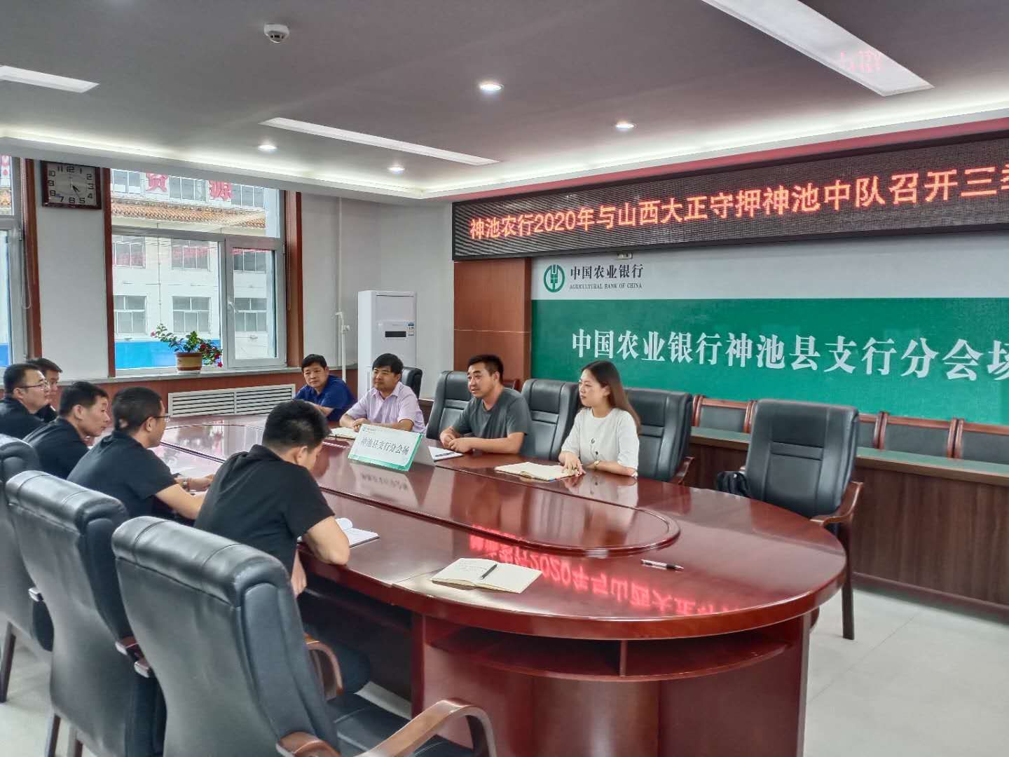8月12日,神池農(nóng)業(yè)銀行與守押神池中隊第三季度聯(lián)席會議在該行召開。會上,農(nóng)業(yè)銀行與會領(lǐng)導(dǎo)行長鄧步云,副行長宮志娟對我中隊長期以來的優(yōu)質(zhì)服務(wù)給予充分肯定和認(rèn)可,能夠與農(nóng)業(yè)銀行工作人員配合默契,安全、高效率地完成農(nóng)業(yè)銀行指派的接送款、與寧武人民銀行繳調(diào)款、忻州繳款、六道街自助ATM機、南關(guān)街自助ATM機、崞水路自助ATM機、太平莊自助ATM機清鈔等任務(wù),很好地完成了各項任務(wù)。